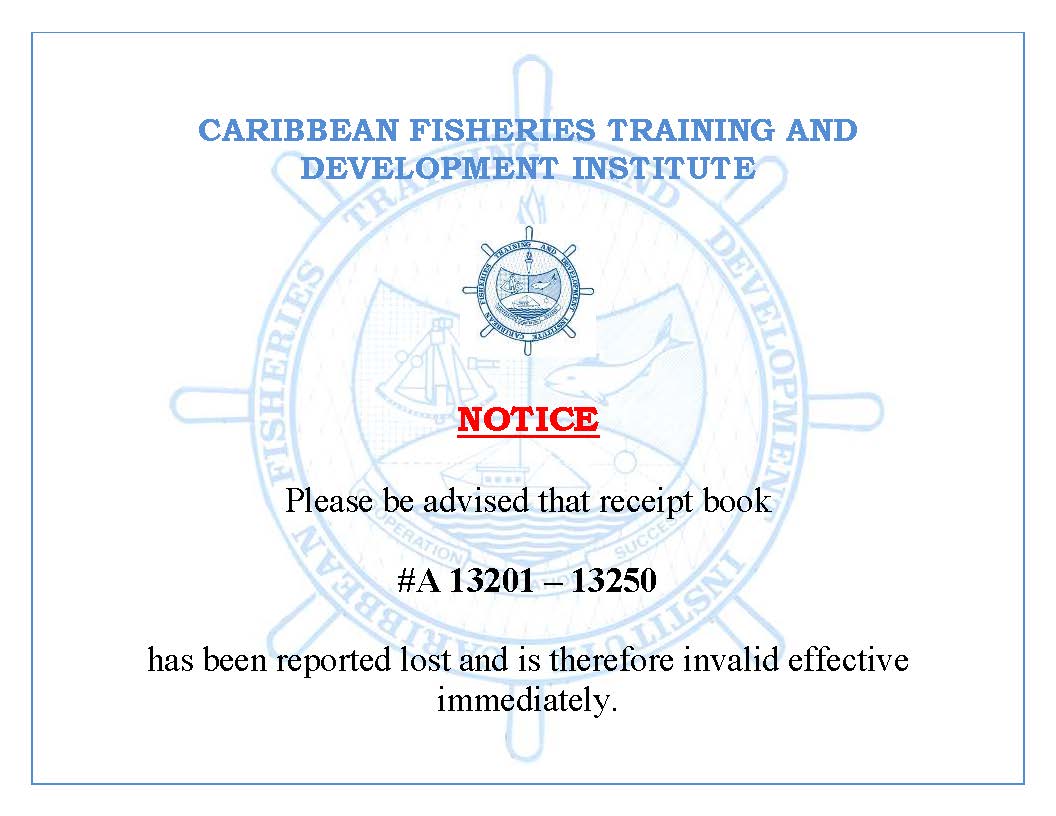 Please be advised that receipt book: #A 13201 – 13250 has been reported lost and is therefore invalid effective immediately. Click here for more Info (113KB Adobe PDF)